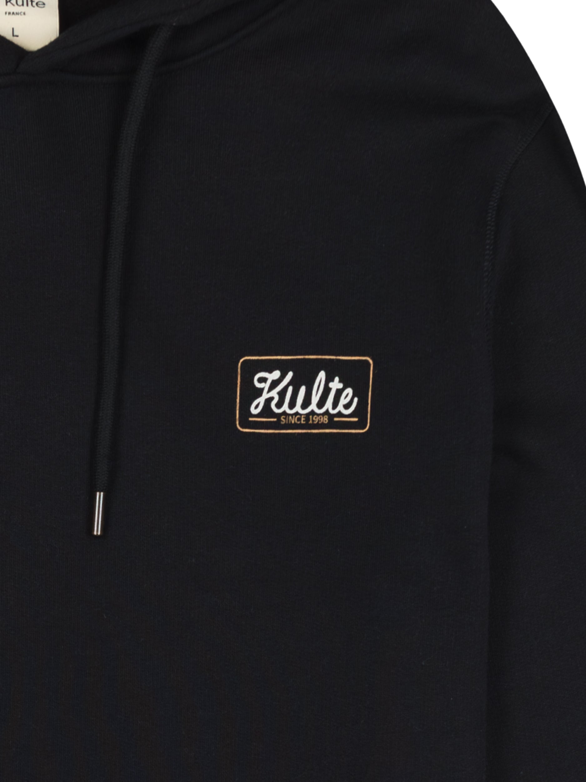 The Kulte hoodie is the iconic hooded sweatshirt model, with a classic cut. It is made of 70% cotton and 30% polyester, which gives it a peach skin feel. It is a brushed fleece for winter, with a high weight of 300 grams / m2. It has a rib at the cuffs and the bottom of the bust. The eyelets are made of brass with the Kulte logo. It is made with care and all the know-how of our factories in Portugal.
